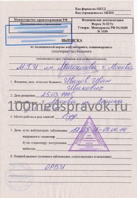 Выписка из истории болезни (справка формы 027/у) позволит без каких-либо сложностей оправдать свое отсутствие на работе или занятиях. При необходимости она дополняется справкой 095/у, которая подтвердит нетрудоспособность пациента и юридическую силу справки 027/у. В совокупности эти два документа полностью объясняют пропуск учебы и работы.